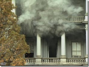 Eisenhower Executive Office, where houses the vice president Dick Cheney's ceremonial offices, was hit by a fire this morning. Thick smoke and flames (picture above) was sighted inside the historic building, it took firefighters one hour to put out the fire which was not a terrorism attack but might have started in an electrical closet or telephone bank area on the building's third floor. Luckily there were no injuries. Vice President Dick Cheney's working offices are in the West Wing of the White House, and he was not in the EEOB at the time of the fire, according to CNN. Click here to watch the video report on the accident. #Tags: white house, Eisenhower Executive Office, fire, accident, dick cheney